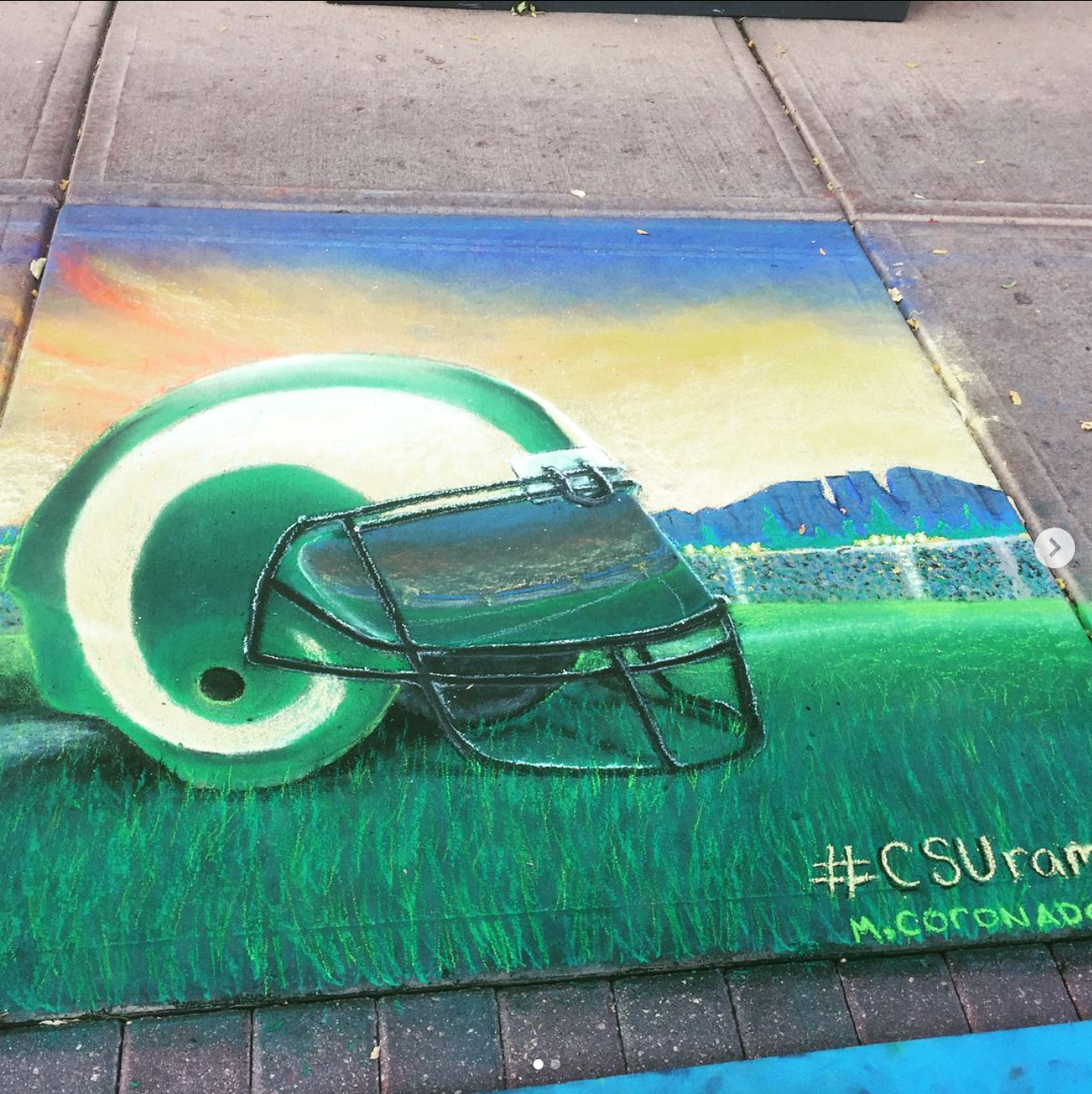 Featured chalk artist hired to help decorate Old Town sidewalks for homecoming weekend.